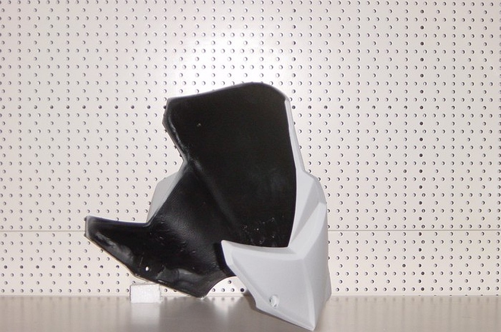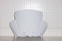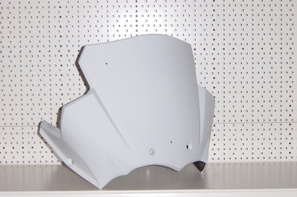 Ab dem oberen Drittel verläuft unser Windschild deutlich steiler und endet aerodynamisch günstig in einer Spoilerabrisskante.