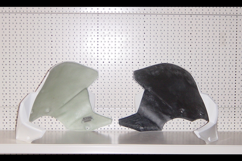 Ausführung GFK unlackiert, Innenansicht Carbonoptik mit Spoilerscheibe.