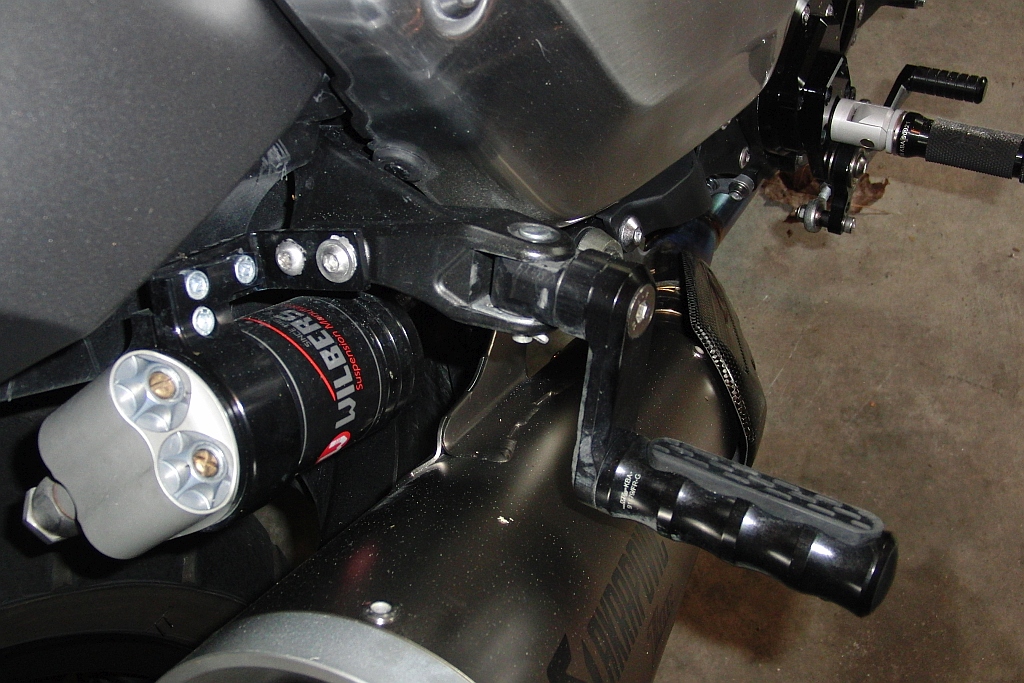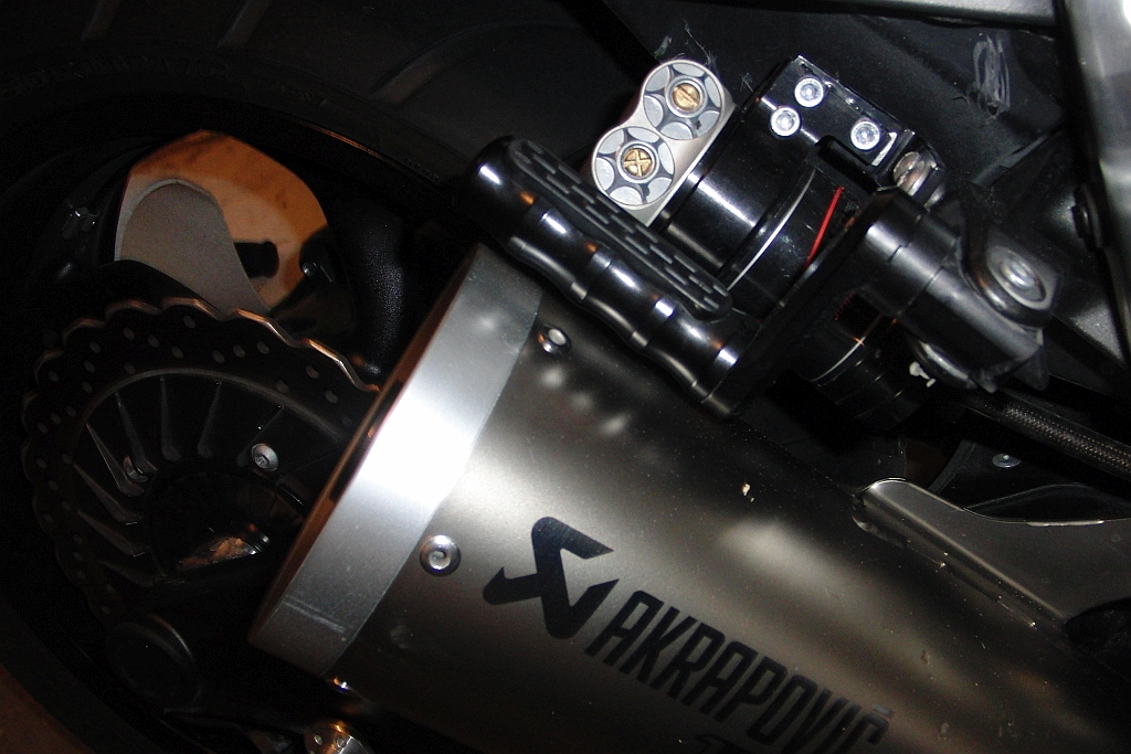 Bei diesem Federbein ist der Ausgleichsbehälter an einer Stahlflexleitung angebracht.