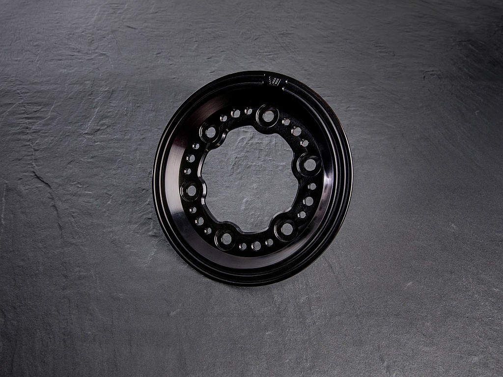CNC-gefräst, feinste Oberflächenveredlung mit BLACKPearl Eloxal in schwarz glänzend.