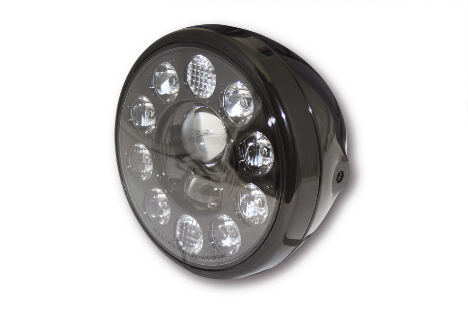 Innovativer Power-LED-Scheinwerfer mit Standlicht und rundem, klarem Glas.