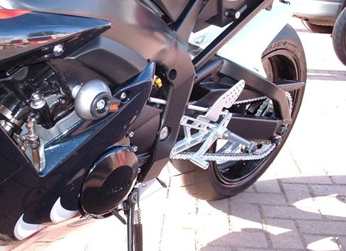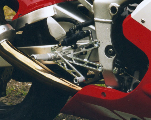 Die Fussrastenanlage enthält Rasten Racing in der Farbe der Grundplatte, wie abgebildet.