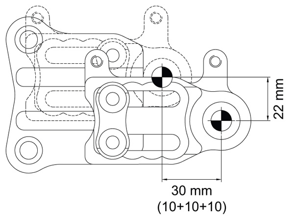Längs: 30mm; 4 Positionen/10mm-Schritte