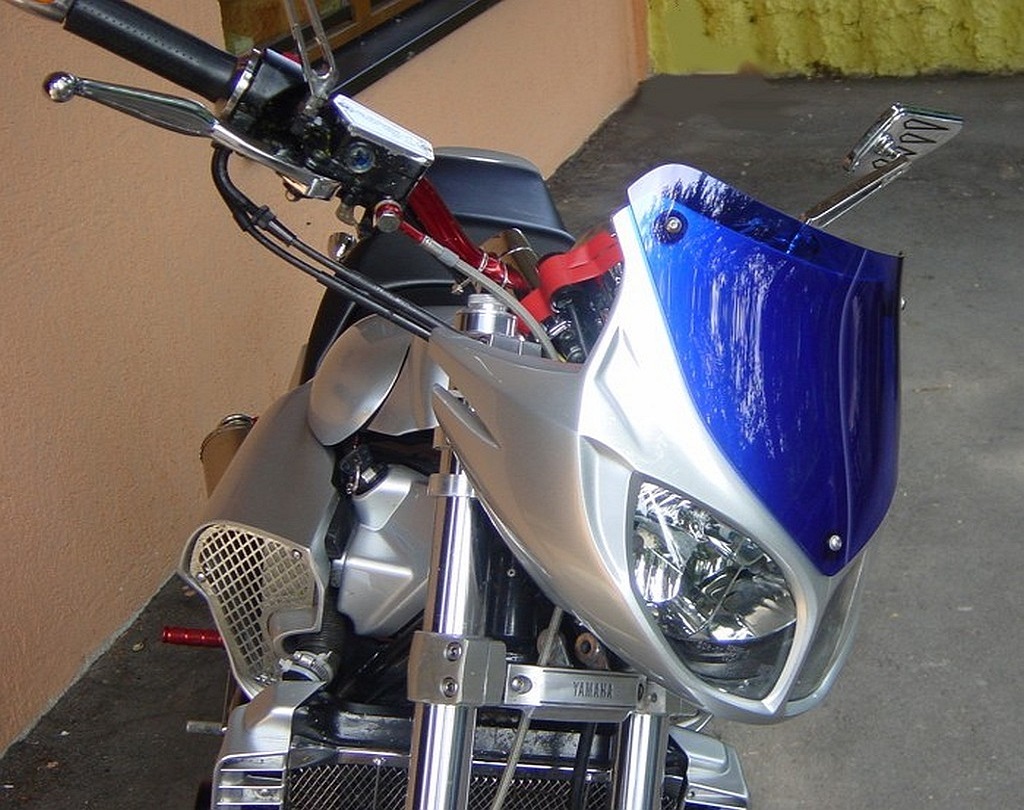 Lenkermaske für Kawasaki ZRX 1200. Ausführung Viper 2 mit Spoilerscheibe und Scheinwerfer.
