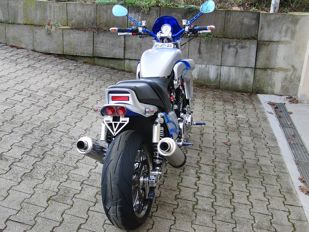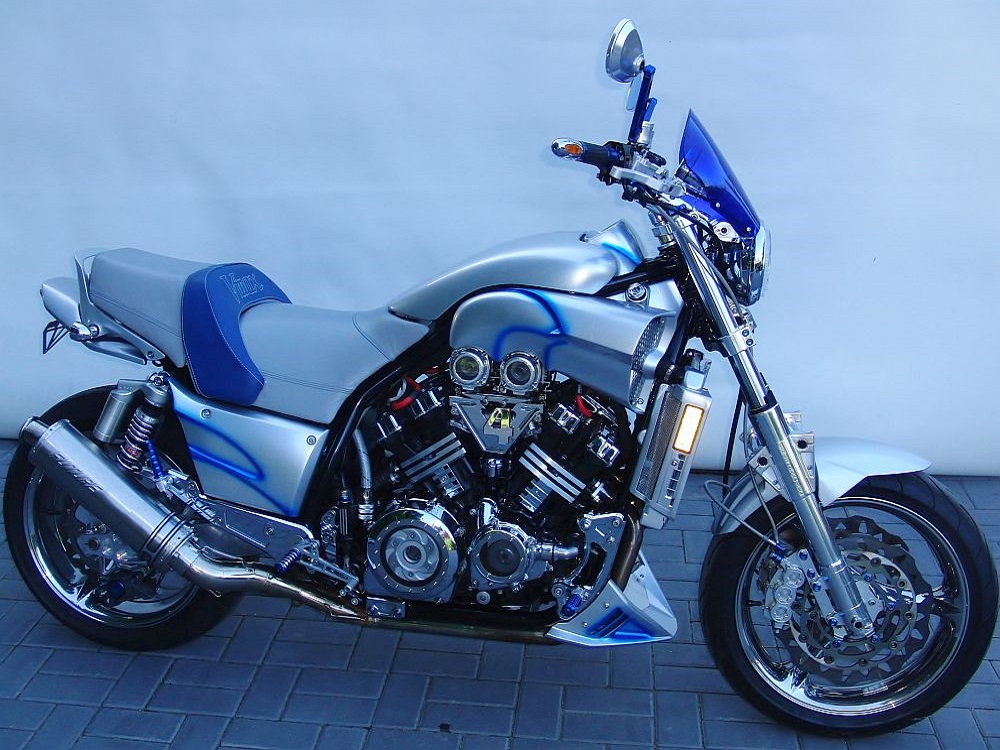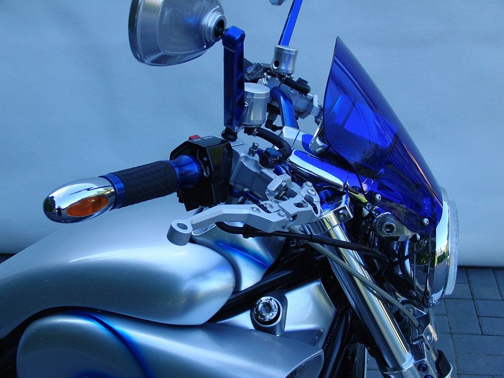 Dieses Windschild wurde zwar speziell für die V Max gebaut, ist aber für alle anderen Naked Bikes mit runden Scheinwerfern ebenso verwendbar.